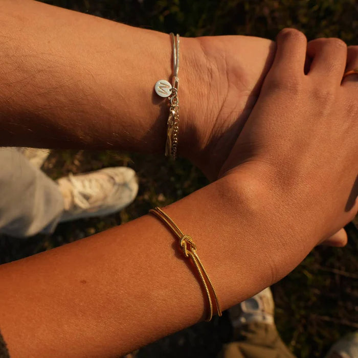 Liebesknoten Amband in 925er Silber als Paar Partnerarmband vergoldet mit Wunschbuchstabe
