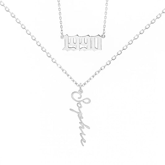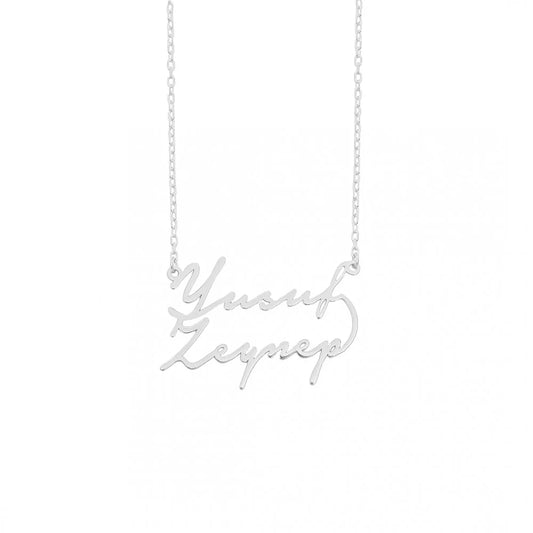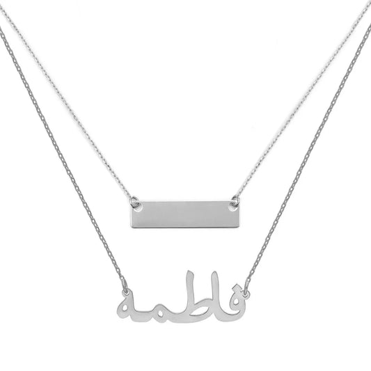 2er Namenskette Arabisch und Gravurplatte in 925er Silber