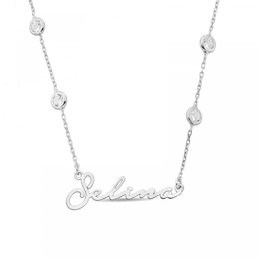 Signature Namenskette in 925er Silber mit Wunschname Steinkette