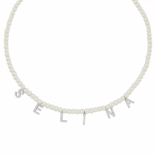 Buchstaben Namenskette in 925er Silber mit Zirkonia Steinen Perlenkette