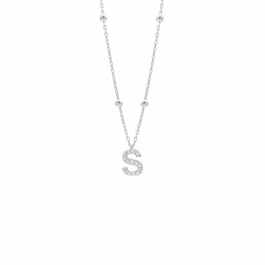 Buchstabenkette in 925er Silber mit Zirkonia Steinen Kugelkette