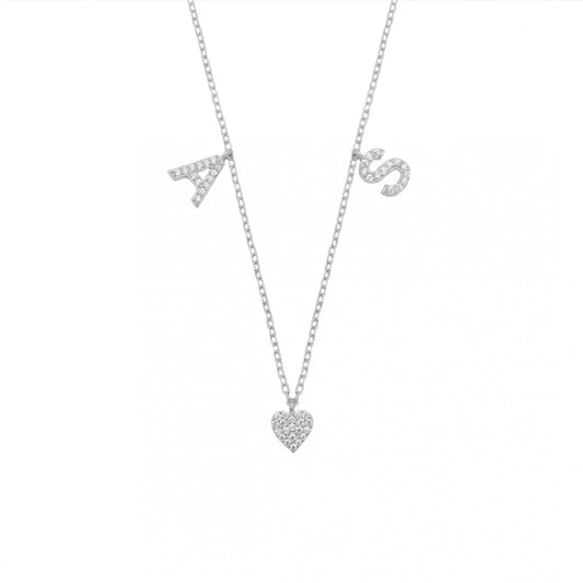 Buchstabenkette mit Herz in 925er Silber mit Zirkonia Steinen