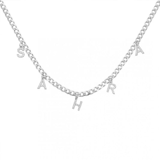 Buchstaben Namenskette in 925er Silber mit Zirkonia Steinen