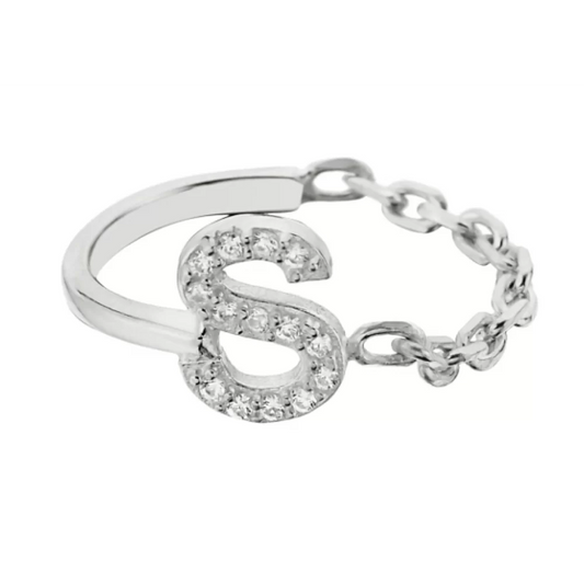 Half/Half Ring mit Wunschbuchstabe in 925er Silber Zirkonia