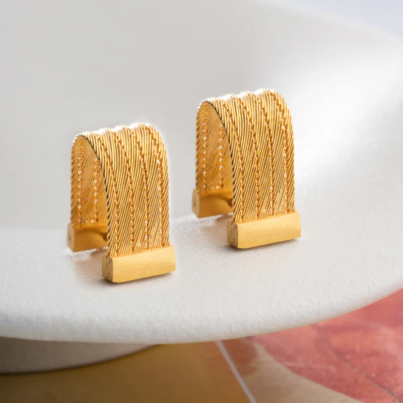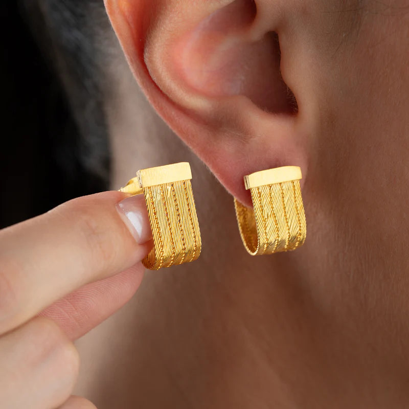 Jedes Paar wird in aufwendiger Handarbeit gefertigt, inspiriert vom traditionellen Hasır-Design aus der Stadt Trabzon – bekannt für seine feine, geflochtene Struktur und den unverwechselbaren goldenen Glanz. Die Ohrringe fangen das Licht auf elegante Weise ein und verleihen jedem Look eine luxuriöse Note.